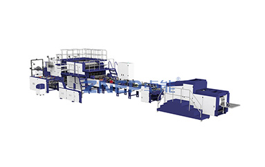 该机器用于生产内折口手提纸袋,由卷筒进纸进料,然后由手挽工位将制好的圆绳和卷筒纸片自动做成手挽,通过输送系统将做好的手挽传送给切把、送把、贴把、压把、内折的装置,然后将片张纸进行贴片位打口、贴片位涂胶、自动粘贴手挽。然后横切,将横切后的单张纸传送给内折机构,再由主机将贴有手挽的纸张进行涂边胶、压痕、成筒、底部涂胶、袋底成形并输送出袋,整个过程一次性同步完成。真正实现了全自动化生产,能够有效地节省人工成本。